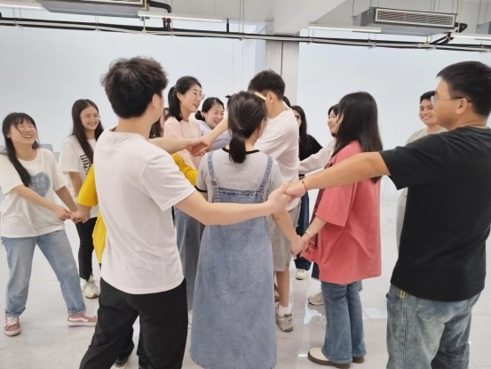 紧接着进行游戏“名字漂流”活动,让同学们互相记住他人的昵称,同学们在空间里随意行走,跟遇到的人握手打招呼,交换名字,直到名字回到自己手中。大家风趣幽默的自我昵称让彼此之间有了充分的了解,活跃了现场氛围,同时也让同学们了解到倾听的重要性。