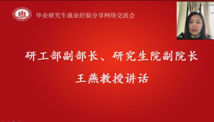 直播伊始,研工部副部长、研究生院副院长王燕教授讲话。王院长首先对目前开展的系列网络就业活动表示肯定,对积极参与活动的同学提出了表扬。王院长还提到虽然目前仍处于疫情防控的阶段,但大家都要对未来充满信心,并且在这次疫情的防控过程中我们能切身感受到我国制度的优越性。她呼吁同学们在如此特殊的时期要从每一件小事做起,为祖国贡献出自己的一份力量,按时上课、按时完成毕业论文、积极就业等。