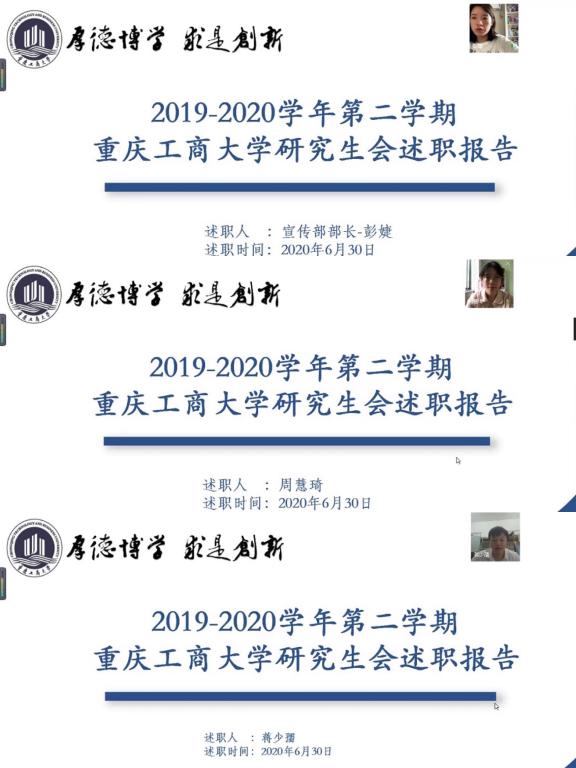 2020年6月30日下午,由研工部主办的开云官网在线登录入口网页版2019-2020学年研究生代表大会在企业微信端隆重召开。出席本次会议的有研工部副部长、研究生院副院长王燕教授,校团委陈琛老师,研工部董承婷老师,研工部罗作勤老师,研究生院王晓漫老师,研究生院杨景老师,研究生院李英娇老师以及各候选人、各班班级代表、研会各部门代表、研自委代表、三助代表和各研分会代表。