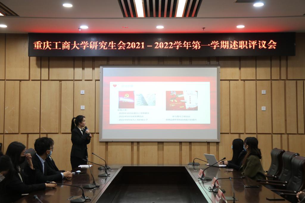 2021年12月24日晚19:00,在图书馆第五会议室召开了我校研究生会2021-2022学年第一学期述职评议会。出席本次会议的有我校党委研工部部长、研究生院院长田双全,校团委副书记胡婧婷,党委研工部副部长、研究生院副院长曾胜,以及第十六届研究生会主席团成员、各部门负责人、工作人员代表和各研究生院代表。