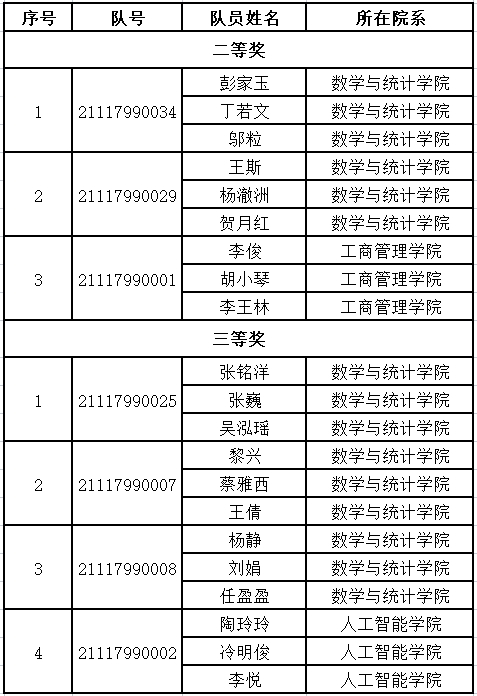 在本届竞赛中,共有来自国内外459个研究生培养单位的17692队研究生交卷参赛。经过网上和集中评审,评选出获得一、二、三等奖获奖队伍,总获奖比例为33.348%,其中全国一等奖206队(获奖比例为仅1.164%)。我校在本届竞赛中共有48个队参赛,7支参赛队获奖,获奖比例14.58%。获奖名单公布如下: