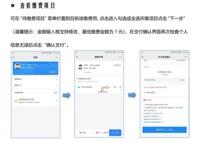 请新生在8月下旬后采取自主方式缴费。所有同学登录方式均为姓名+学号(或姓名+身份证号)。请按如下指引及时缴纳学费及住宿费: